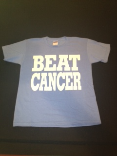 Carolina Blue and White themed Beat Cancer T-Shirt - no logo! Unfortunately we only have a few Youth Medium shirts left in this color.
